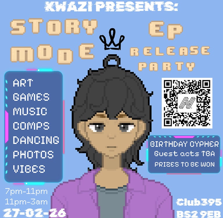 One of Bristol rap’s brightest young stars, Kwazi bids adieu to the community space that’s done more to prop him up than anyone. Low-slung trapstar 808s, anime-toting lyrics and laidback boom bap flow + the usual 395 antics to end things on a high. End of an era stuff FFO: Novelist, Dave, Jay Prince, BENJI."